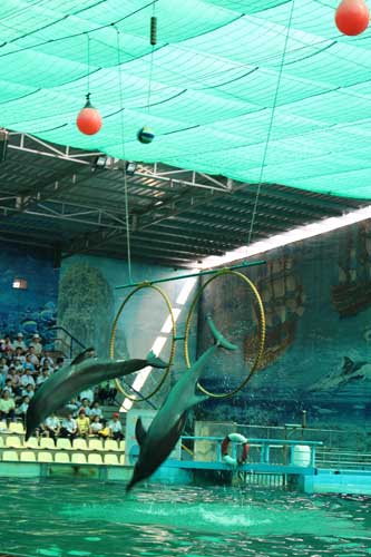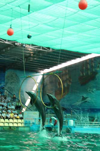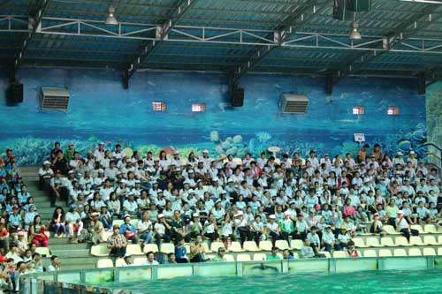 Chúng tôi đi dạo vòng quanh khuôn viên của Suối Tiên và ngắm nhìn những công trình khổng lồ ở đây, và điểm dừng chân đầu tiên của chúng tôi là nơi biểu diễn xiếc cá heo và sư tử biển.