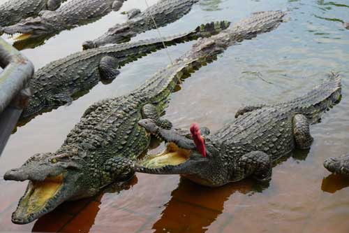 Dọc theo con đường hẹp để đến với Vương quốc cá Sấu nơi chúng tôi có thể nhìn thấy Cá Sấu và cho chúng ăn.
