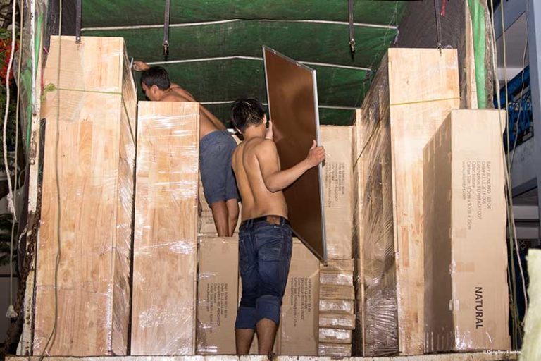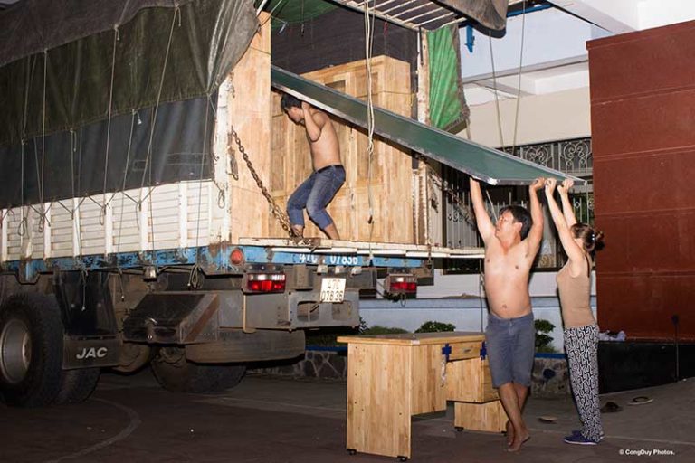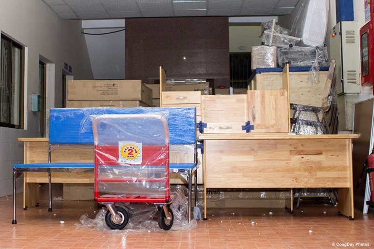 Để chuẩn bị đón 97 thành viên đầu tiên của Trung Tâm Bảo Trợ Xã Hội Nhà May Mắn mới tại Đắk Nông vào giữa tháng 8, nhân viên và đối tác của Tổ Chức Maison Chance nỗ lực gấp đôi thời gian để cung cấp trang thiết bị đúng thời hạn. Ngoài tủ và bàn gỗ lớn, chúng tôi còn chất đầy nhất có thể với những cái bảng cho các lớp học, những chiếc giường cho các thành viên tương lai và trang thiết bị cho nhà bếp.
