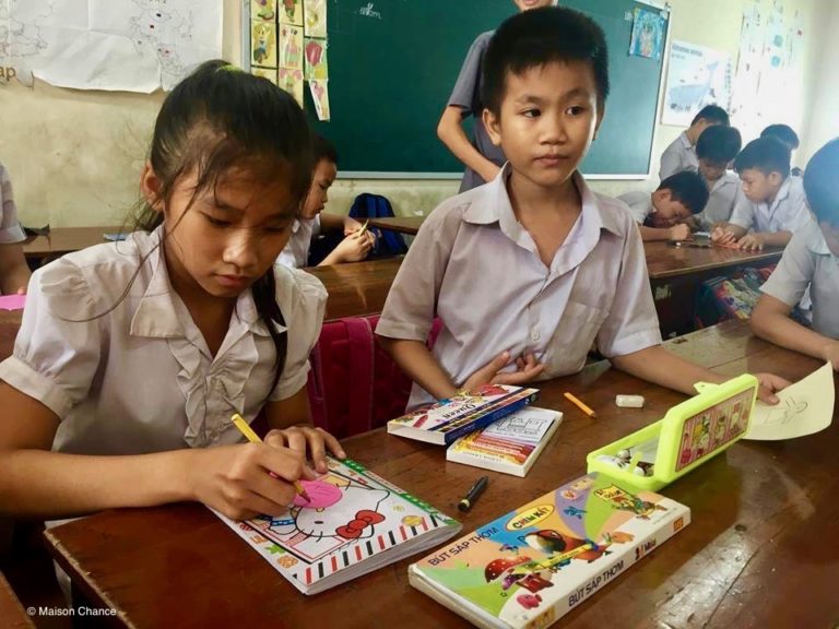 Sau khi nỗ lực hết mình, các em được nghỉ ngơi thoải mái! Các học sinh đã dành ngày cuối cùng để làm nghệ thuật và thủ công với các học sinh trường Làng May Mắn và chơi đùa với các em trong sân thể thao Village Chance.