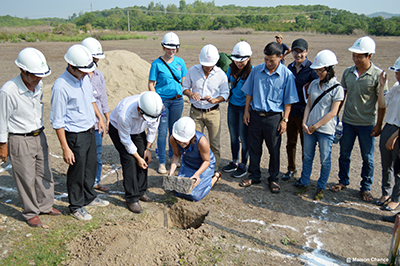 Sunday 8th May 2016, the groundbreaking ceremony of our future social center took place in Dak Nong. Tim with her project team and the construction company pray to thank the earth and the sky wishing everything goes well. Then, Tim dug a hole to set the first stone. A great feat followed in the joy of a project taking shape.