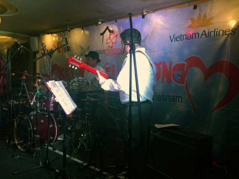 Once arrived, the charity events succeeded one another. The first gala was organized by the NGO Engvina Charity at the restaurant Yi-Ban on the evening of October 21st. Many famous Vietnamese singers sang on the stage to mark the occasion.