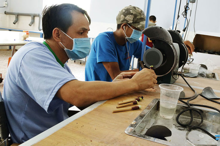 At the beginning of October, the semi-precious stones carving workshop was opened by Maison Chance Social Center in Dak Nong province. There are 5 students, most of them are physically challenged, those are paraplegics, others have weak legs. Despite their disability, they have overcome adversity to study for a better future.