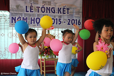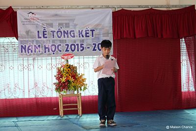 School year has now ended for the students of Village Chance’s school. Before leaving for the holidays, the end of school year was celebrated on Saturday, May 28th, 2016. All the classes from kindergarten and primary school were gathered in the multipurpose room for the occasion. The show started around 3pm in front of the teachers, parents and Maison Chance’s management representatives. The show started with a sketch by the kindergarten children, followed by dances by the youngest students, a song performed by one of the students, poem recitation and ended with a dance by the oldest students.