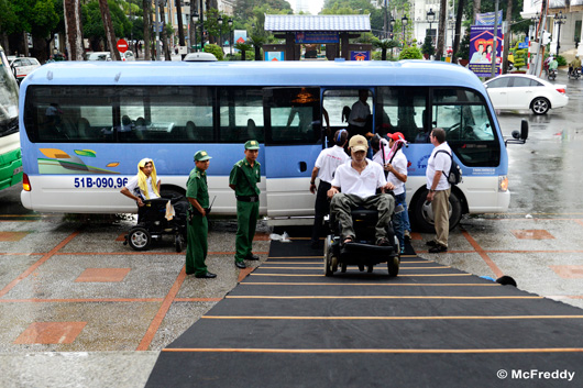 Tiếp theo, sau đó lần lượt những chiếc xe lăn điện trình diễn tiết mục xoay vòng. Mười người liệt tứ chi, cơ thể đơ cứng do đó họ chỉ động đậy được mỗi một vai, họ vẫn trình diễn. Trên nền nhạc Down the road và dưới ánh đèn chớp nháy theo kiểu thể thao, họ đã thể hiện một vũ điệu hoàn hảo và đầy hăng say. Nụ cười rạng ngời trên gương mặt của họ. Một màn kịch câm do hai em học sinh trình diễn. Chỉ mất vài giây để màn kịch này thuyết phục đươc những vị khách mời, mê hoặc bởi tài năng của hai chú hề là học sinh. Tất cả những học sinh này sau đó tham gia trên sân khấu bằng việc xếp một hàng dài xinh đẹp, tay trong tay.
