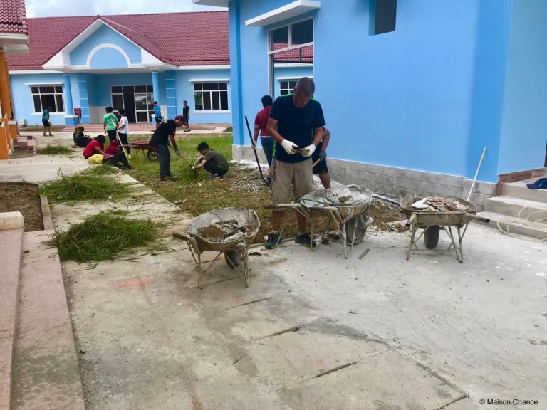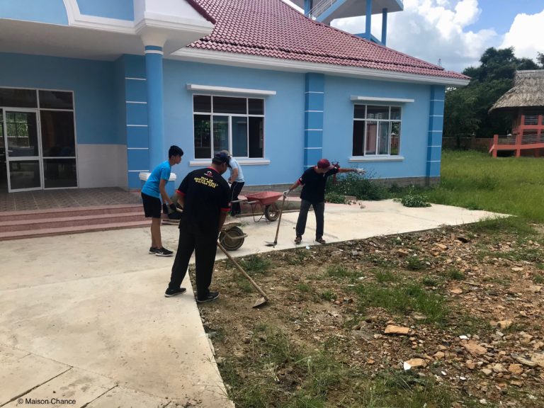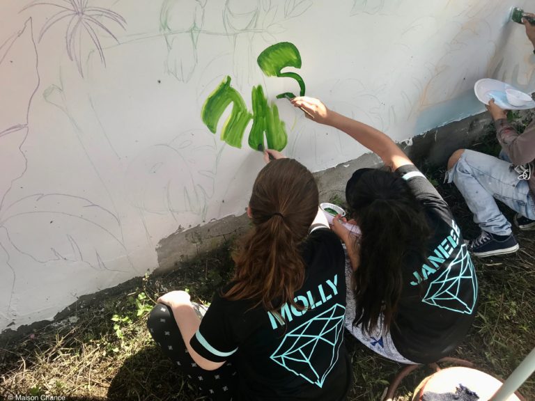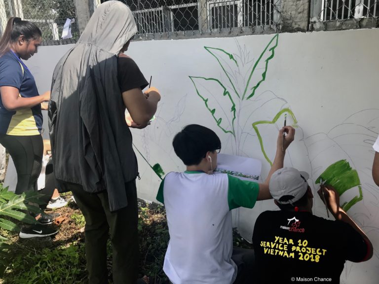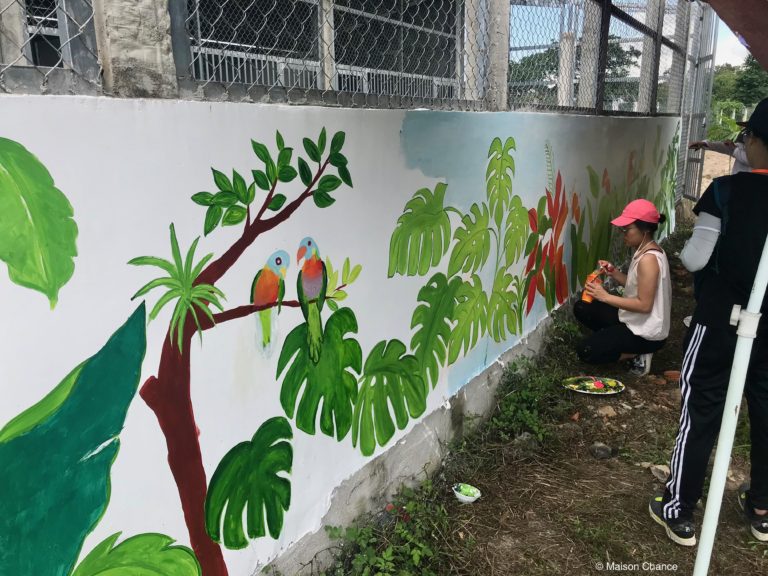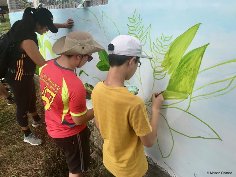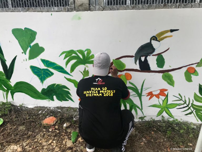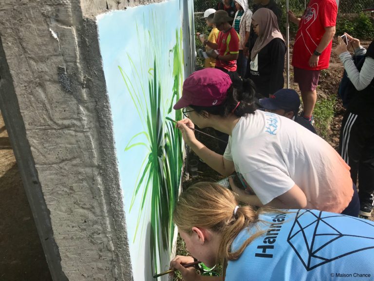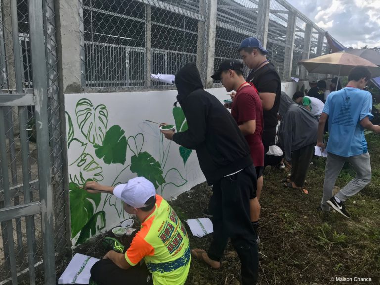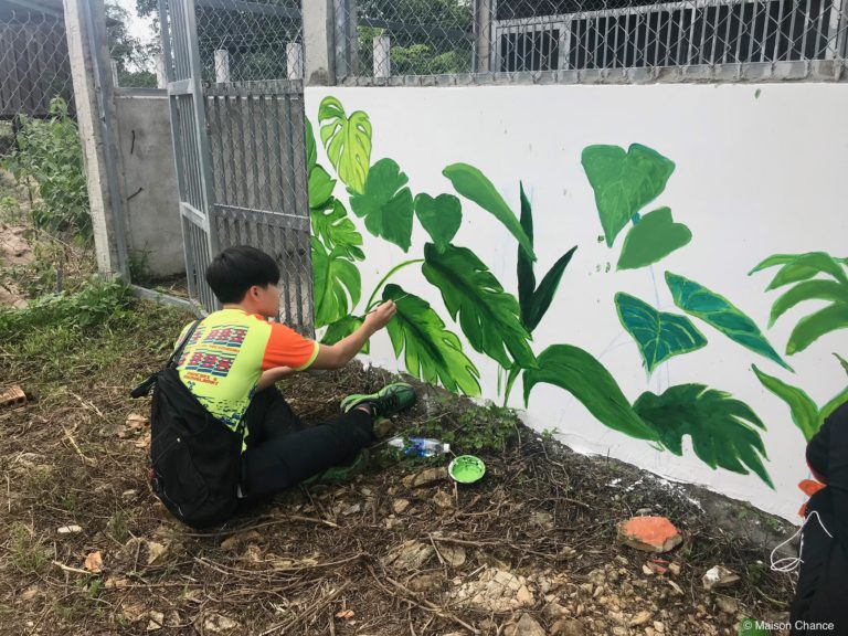 At the end of June, Maison Chance was pleased to welcome one of the Brunei International School classes in the new social center in Dak Nong. The students came to paint a tropical design mural on the future dog shelter.
