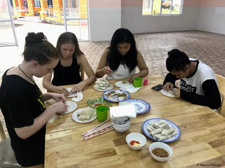 During their stay in Vietnam, they learn how to cook typical Vietnamese food such as springrolls and eggrolls, that they will be allowed to devour for dinner!