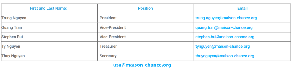 The association Maison Chance USA was created in 2008. Our activities serve to: