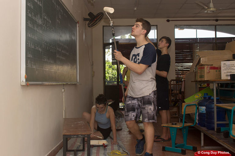 They repainted walls of the primary school, cleaned up the campus and organized various games with children. The trip was the initiative of teacher Patrick Gauthier.
