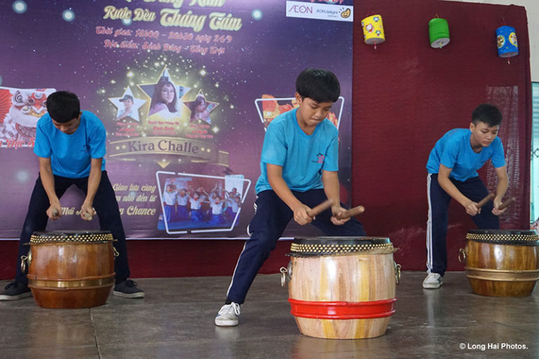 Trọng tâm của buổi giao lưu là phần văn nghệ được các em nhỏ tại Làng May Mắn tập luyện và trình diễn. Những tiết mục này sẽ góp vui vào chương trình vui Trung Thu được tổ chức tại trung tâm thương mại Aeon Mall.
