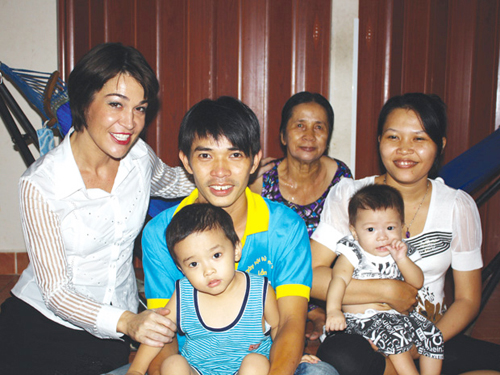 Gia đình nhỏ của Kim Văn Phước và hai người mẹ: Tim Aline Rebeaud (bìa trái) và mẹ ruột (ngồi võng).