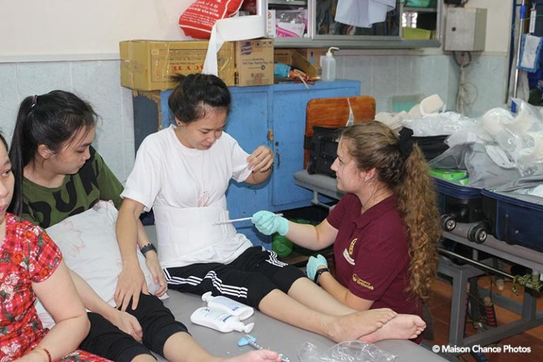 Tại Maison Chance, chúng tôi vẫn chưa có các bác sỹ chuyên ngành chân nên đây thực là một dịp may mắn. Các bác sỹ và y tá của chúng tôi đã có mặt nhằm trợ giúp cũng như học hỏi thêm kiến thức chuyên ngành.