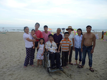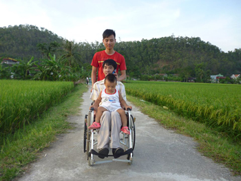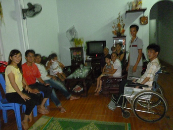 Thế là làng trên xóm dưới, già trẻ, gái trai kéo nhau lại vây quanh chiếc xe. Em trai tôi phải loay hoay chào bà con một hồi mới bế tôi xuống xe lăn ngồi. Nhìn thấy tôi ngồi xe lăn các bà cụ, cô dì rưng rưng khóc ôm lấy tôi. Lúc ấy tôi chỉ biết nén lòng, cảm động trước tình cảm của bà con, anh em, bạn bè dành cho mình…