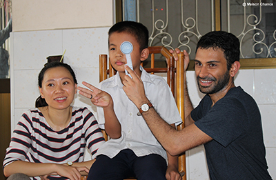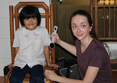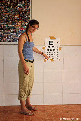 Ngày đầu tiên, các sinh viên này đã tiến hành kiểm tra mắt cho các em học sinh của nhiều lớp khác nhau. Cùng sự hỗ trợ của ba tình nguyện viên Thụy Sỹ, cũng đang họcn gành y, từng em học sinh được khám cẩn thận và đưa ra những giải pháp phù hợp cho mỗi trường hợp. Sau buổi khám này, 14 em trên tổng số 187 em học sinh của trường cấp Nhà May Mắn đã nhận được kính.