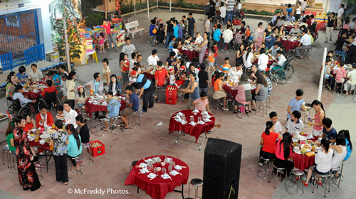 Tại Nhà May Mắn, Giáng sinh được tổ chức trong không khí tưng bừng, nhộn nhịp cùng với một gia đoàn kết và những đứa trẻ hạnh phúc! Một kinh nghiệm độc nhất tại Việt Nam!