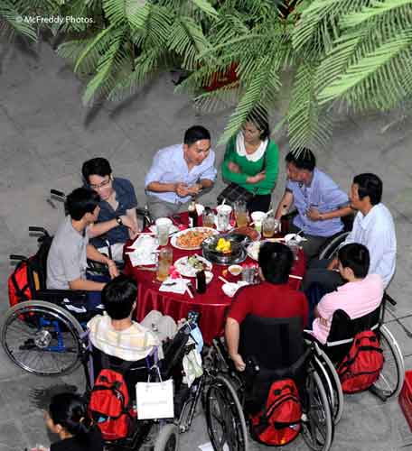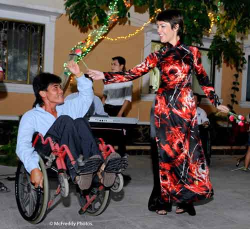 Không giống như Noel ở Pháp, nơi mà hầu hết những nghi lễ diễn ra tại nhà với những bữa ăn truyền thống và những cuộc họp mặt gia đình, ở đây, tại Nhà May Mắn, chúng tôi đã tổ chức buổi lễ Giáng Sinh ngoài trời. Buổi tối Giáng Sinh, tất cả các thành viên của Nhà May Mắn đã tập hợp về Làng May Mắn, ăn uống cùng nhau và vui vẻ đúng nghĩa như gia đình của họ. Điều này là bởi vì Nhà May Mắn là một gia đình ấm cúng và nhã nhặn, Giáng Sinh chỉ là một dịp để họ có những giây phút thư giản, ăn, uống, ca hát và cùng nhảy múa. Giáng Sinh tại Nhà May Mắn là một buổi lễ lớn!