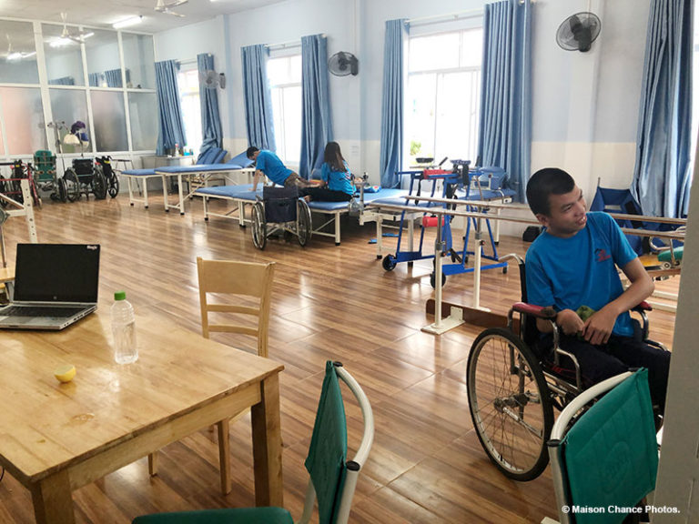 Phòng tập Vật lý trí liệu đóng vai trò quan trọng cách riêng đối với người khuyết tật, nhất là những người liệt hai chi và tứ chi. Tại Trung Tâm, họ được tham gia các buổi luyện tập mỗi ngày giúp duỗi cơ nhằm ngăn ngừa nguy cơ bị xơ cứng, đau nhức và các bệnh đường ruột. Những phương pháp trị liệu tiên tiến cũng sẽ được áp dụng bao gồm phương pháp trị liệu với con ngựa, thuỷ trị liệu và trị liệu thông qua việc trồng trọt, chăn nuôi.