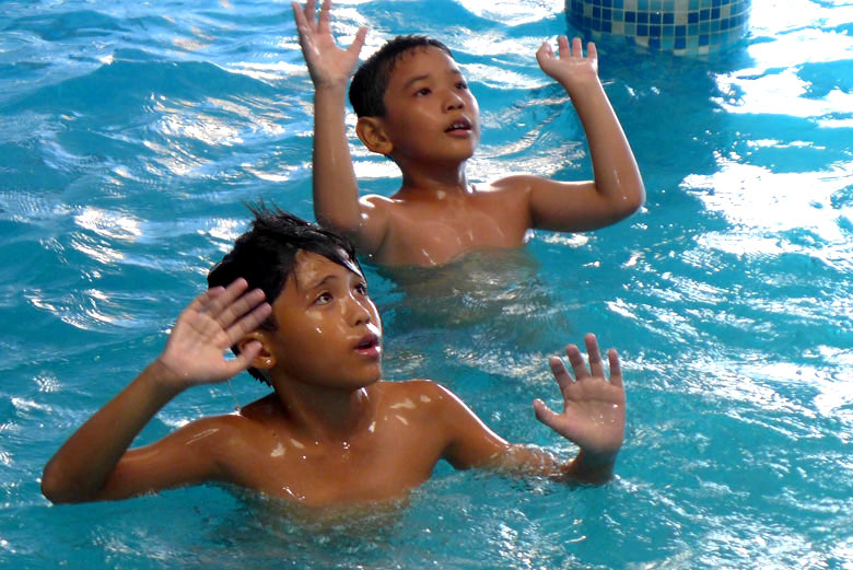 Các em ghi danh trong hồ bơi ngay lập tức, không hề chậm trể. Dù là bóng nước, cuộc bơi đua hay đơn thuần chỉ để vui chơi giữa các em, các em học sinh rất vui và hạnh phúc như những con cá đang được bơi trong nước.