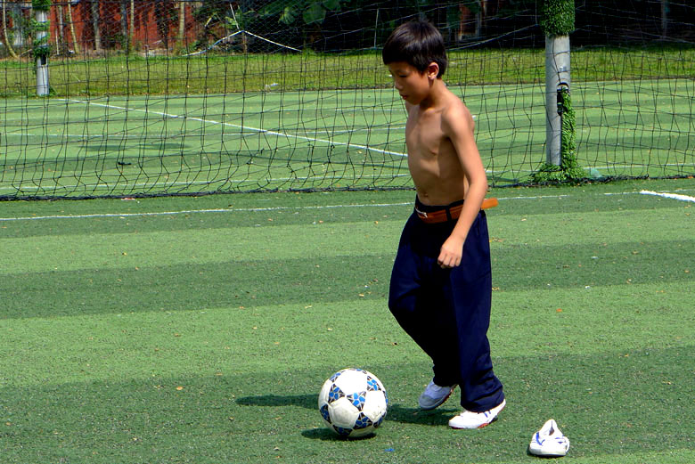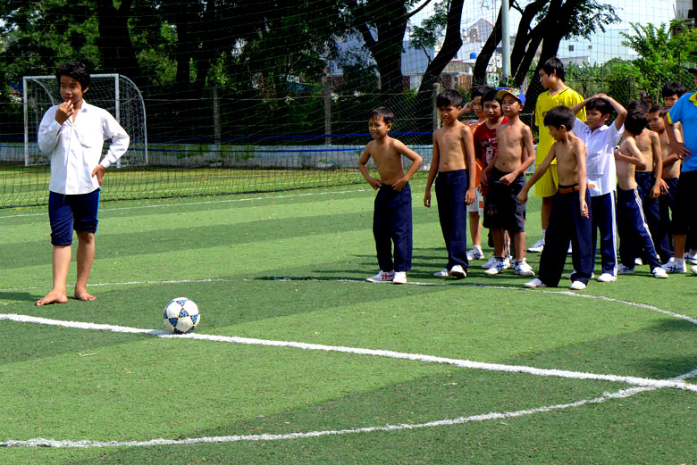 Cùng thời điểm, trên sân bóng, sân Pelé nhỏ của chúng tôi đầy tràn năng lượng. Không để cho cầu thủ của đối phương ghi bàn! Tuy nhiên vẫn có người thua cuối trận đấu…Tiếng còi báo hiệu hết giờ. Một đội nhảy mừng sung sướng, đội còn lại thì riêng rẽ hơn, thất vọng vì thất bại. Nhưng không có hiềm thù, các cầu thủ của chúng tôi cùng đi với nhau, kiệt sức nhưng nụ cười vẫn nở trên môi.