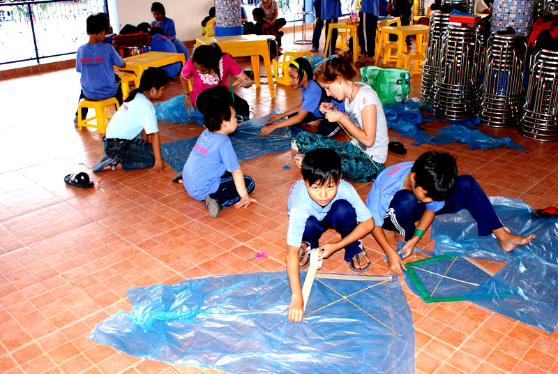 Giấy, keo, kéo… chúng tôi đang có mặt tại phòng làm đồ thủ công! Các em đã chế tạo thành công những cánh diều, lồng đèn bằng giấy và cả các nhạc cụ từ vật liệu tái chế. Việc này sẽ gây ấn tượng với các bạn học của các em tại sân trường !