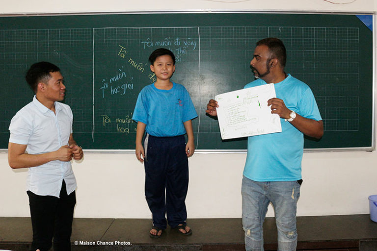 “Bạn không thể quyết định cách mình sẽ sinh ra trên đời, nhưng bạn hoàn toàn có thể quyết định cách mình sẽ ra đi như thế nào” là câu nói đã thuyết phục Steve Saravanan, người sáng lập và giám đốc công ty Dream Big (Ước Mơ Lớn). Cùng với bạn bè và nhân viên của Dream Big, Steve từ Singapore đến thăm Maison Chance và mang đến một món quà động viên cho học sinh lớp 3, 4, 5 tại Làng May Mắn.