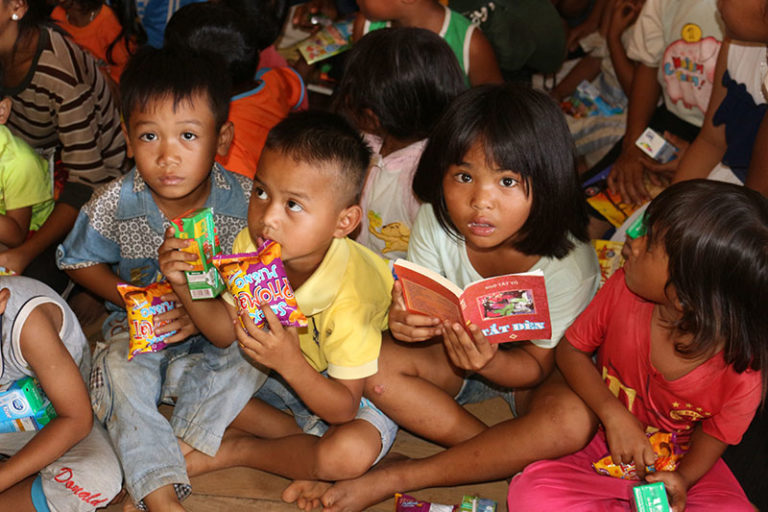 Happy Class cũng đã quyên góp và tặng các phần quà như sách, đồ chơi, quần áo và bánh kẹo cho các gia đình và các em nhỏ ở buôn Bon Jarah mà họ đã thăm trước đây. Đây là quê hương của người M’nong và Ê Đê, hai trong số 53 dân tộc thiểu số đang sinh sống tại Việt Nam. Nhân dịp này, buôn làng đã chuẩn bị lễ hội tại Nhà Rông (Nhà Cộng Đồng) với những bài ca và các điệu nhảy của dân tộc mình để cảm ơn Happy Class. Nhóm Happy Class cũng thể hiện tài ca hát của mình để hòa mình chung vui với mọi người.