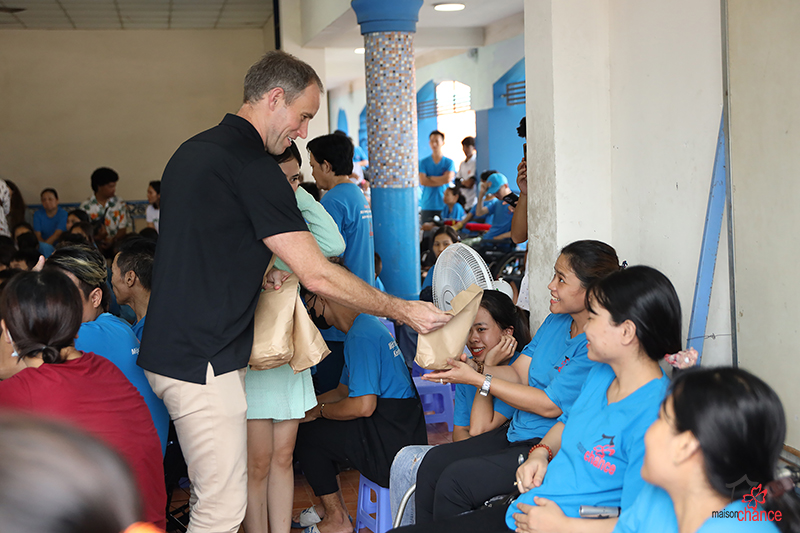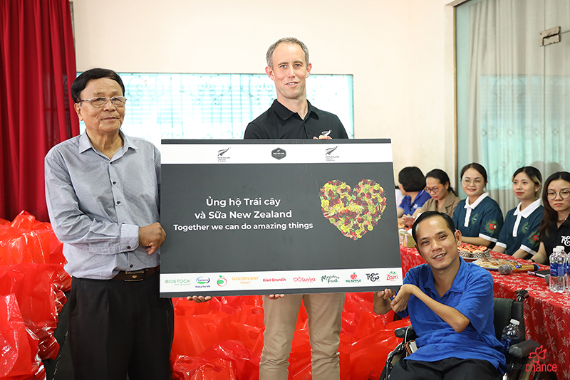 Ông Scott James – Tổng lãnh sự New Zealand bày tỏ sự cảm động khi nghe những thành viên ở Nhà May Mắn chia sẻ về câu chuyện trở thành một phần của một gia đình lớn. Ông cũng mong các em nhỏ, những người khuyết tật và gia đình sẽ thích món quà mà ông cùng đoàn mang đến. Đây là năm thứ 2 Nhà May Mắn được tặng trái cây từ Tổng Lãnh sự quán New Zealand. Năm nay, Lãnh sự quán New Zealand và các công ty đã trao tặng 156 thùng táo, 25 khay kiwi cùng 420 lít sữa cho các học sinh và thành viên Nhà May Mắn.